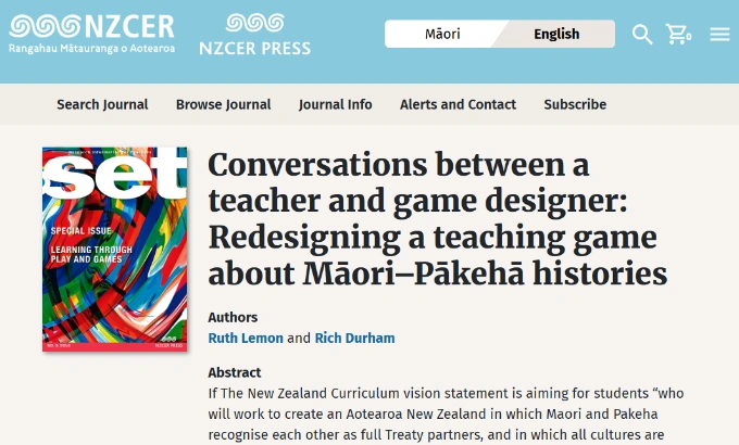 Conversations between a teacher and game designer: Redesigning a teaching game about Māori-Pākehā histories.Further resources
