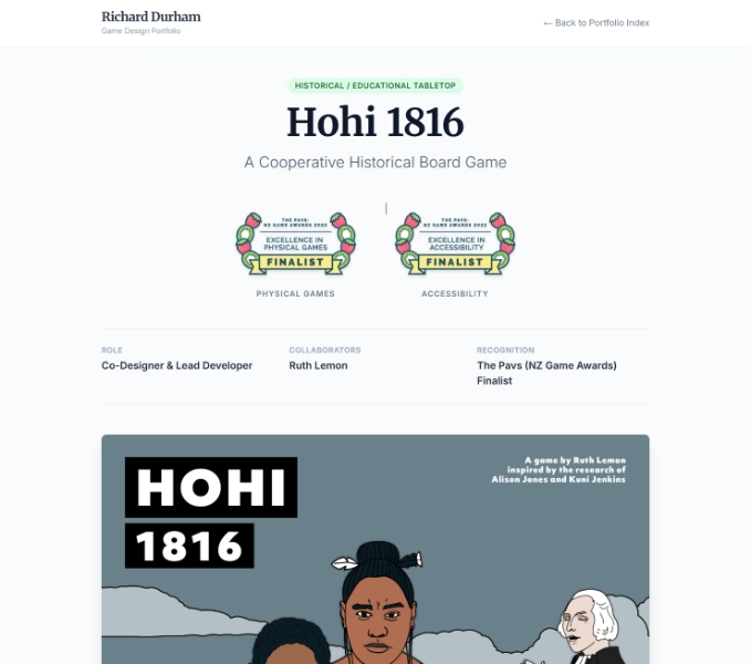 HOHI 1816 is a board game about Aotearoa’s first Western-style school at Rangihoua in the Bay of Islands. It is inspired by the research of Alison Jones and Kuni Jenkins and was developed with contestable funding from the University of Auckland Learning Enhancement Grant.